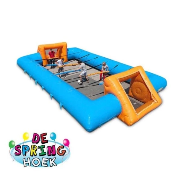 Dit leuke, sportieve levend tafelvoetbalspel is gebaseerd op het tafelvoetbalspel, maar het leuke aan dit spel is dat de spelers de levende voetballers zijn! Je zit met een handvat vast aan de “stangen” binnen de boarding. Door het unieke schuifsysteem kun je gemakkelijk heen en weer schuiven. Door de hoge boarding zal de bal niet zo snel buiten het veld worden getrapt. Scoor jij met je team de meeste doelpunten.