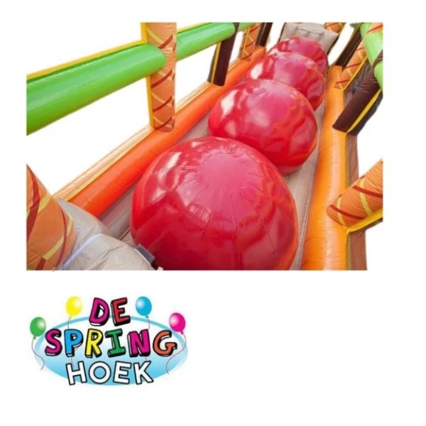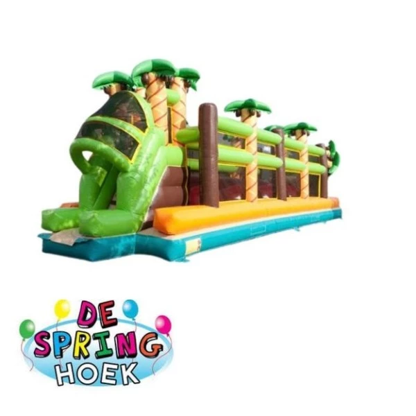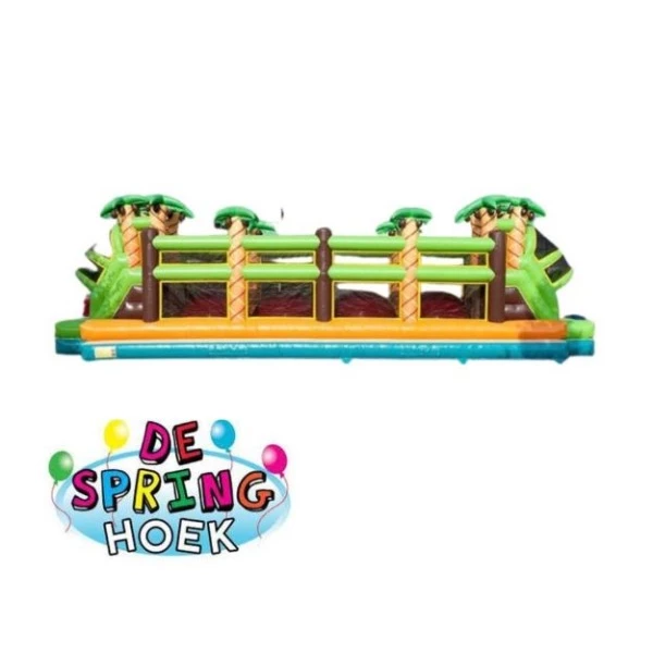 Een stormbaan vol obstakels en hindernissen. Echt een uitdaging dus! Wie bereikt als eerste de overkant van deze opblaasbare hindernisbaan in jungle thema? De strijd kun je winnen door vliegensvlug te kruipen, rennen, springen, klimmen en glijden op dit parcours. Hiermee uw evenement één groot feest